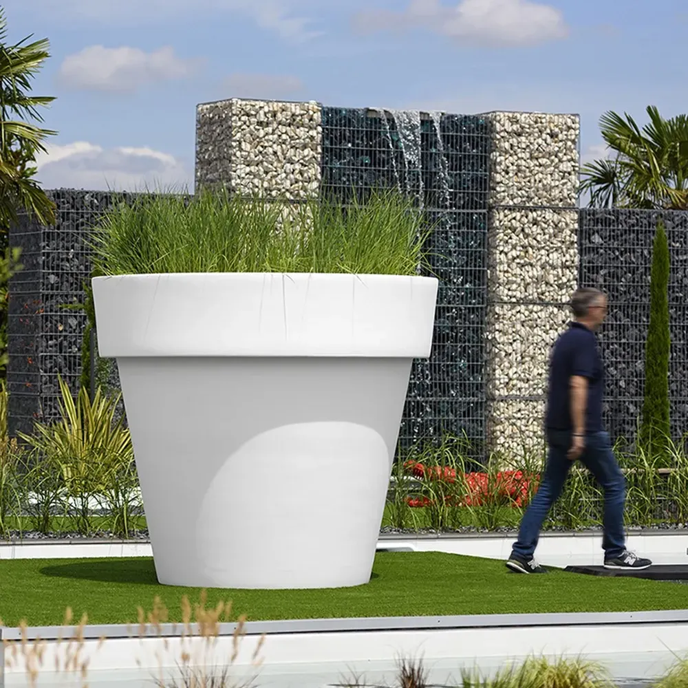 Um bei diesem Koloss von euro3plast nicht mehrere hundert Liter Erde verwenden zu müssen, ist dieser IKON oben geschlossen, so dass nur der oberste Teil mit Erde bedeckt und mit Gräsern und dergleichen bepflanzt werden kann. So haben Sie den Vorteil eines eindrucksvollen XXL-Pflanzentopfes ohne den Nachteil der übermäßigen Schwere eines randvoll gefüllten IKON.